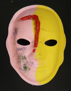 Explanation of Mask: I was just 21 years old when I smacked my head – wow did it ever hurt! I did not go to the emergency room because I didn’t have insurance and I was still paying for my back injury the previous year. So I took aspirin for the pain. Lots of aspirin. A couple of weeks later, my left arm was paralyzed, so I went to the doctor – I would not let anyone take me to the hospital because I didn’t have the money. I would go to work, but my speech became garbled, or my hand wouldn’t work, so they sent me home until I used all of my vacation and sick leave time. It was all so random and unpredictable. I believe that the people around me were as frightened as I was because nobody knew what to do. My choice of survival tools was to work harder and to pretend to be the way I was before. Friends would tell me that I was never the same again, but I would only try harder.