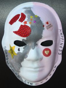 Explanation of mask: My mask represent a happy life for my daughter Tracey before, during, and hopefully after tumors. It shows the amazing strength on Tracey’s part to move forward and survive!